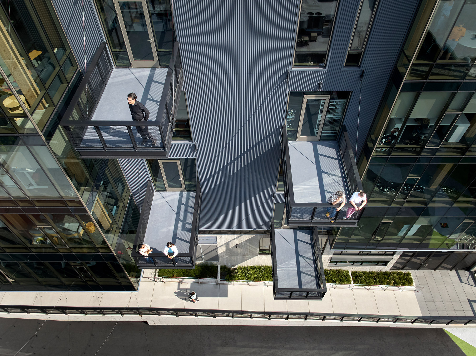 Beyond the extensive timber interior, numerous operable windows, balconies and outdoor terraces promote access to daylight and fresh air. Visual access to the surrounding landscape and neighborhood serve as a connection to the natural world – proven to boost occupant health, mood, cognitive function and overall performance, ultimately benefiting office tenant employees.