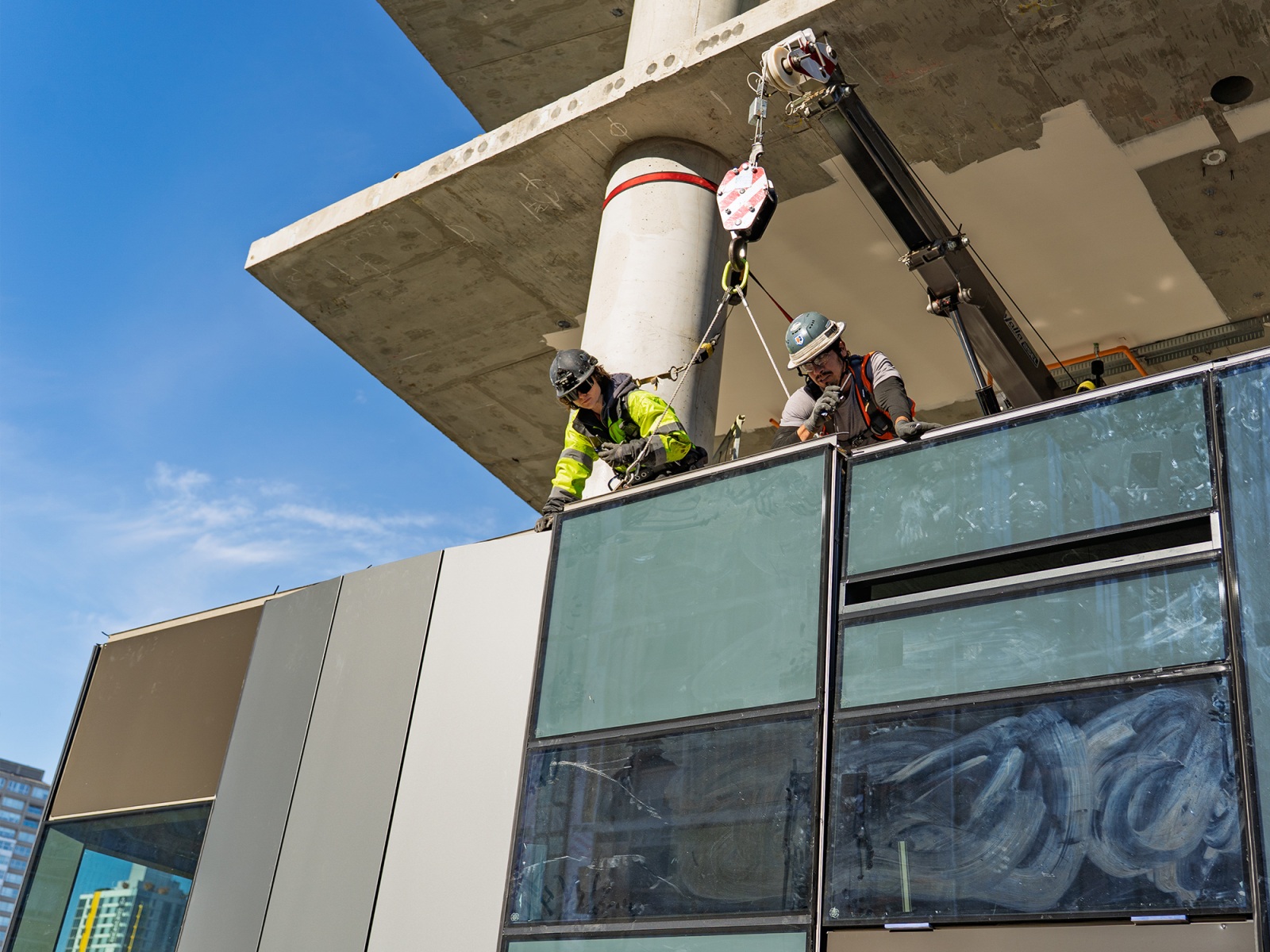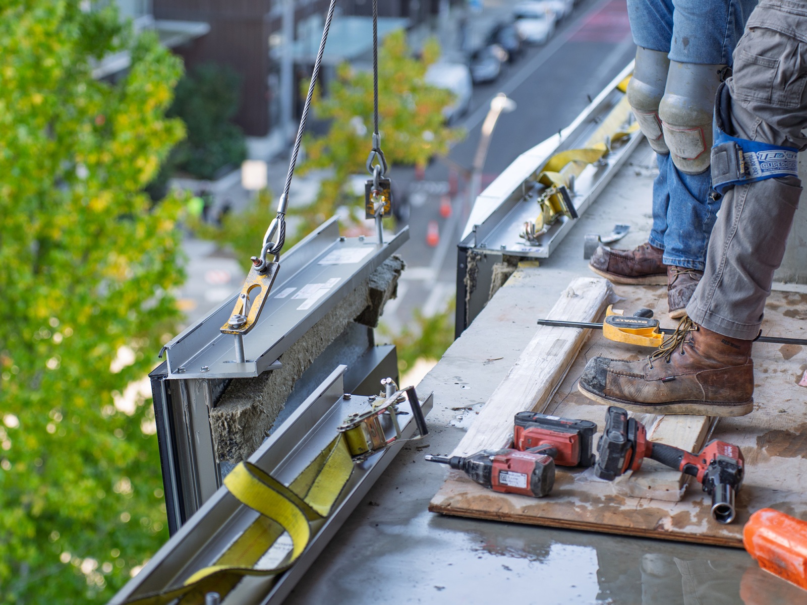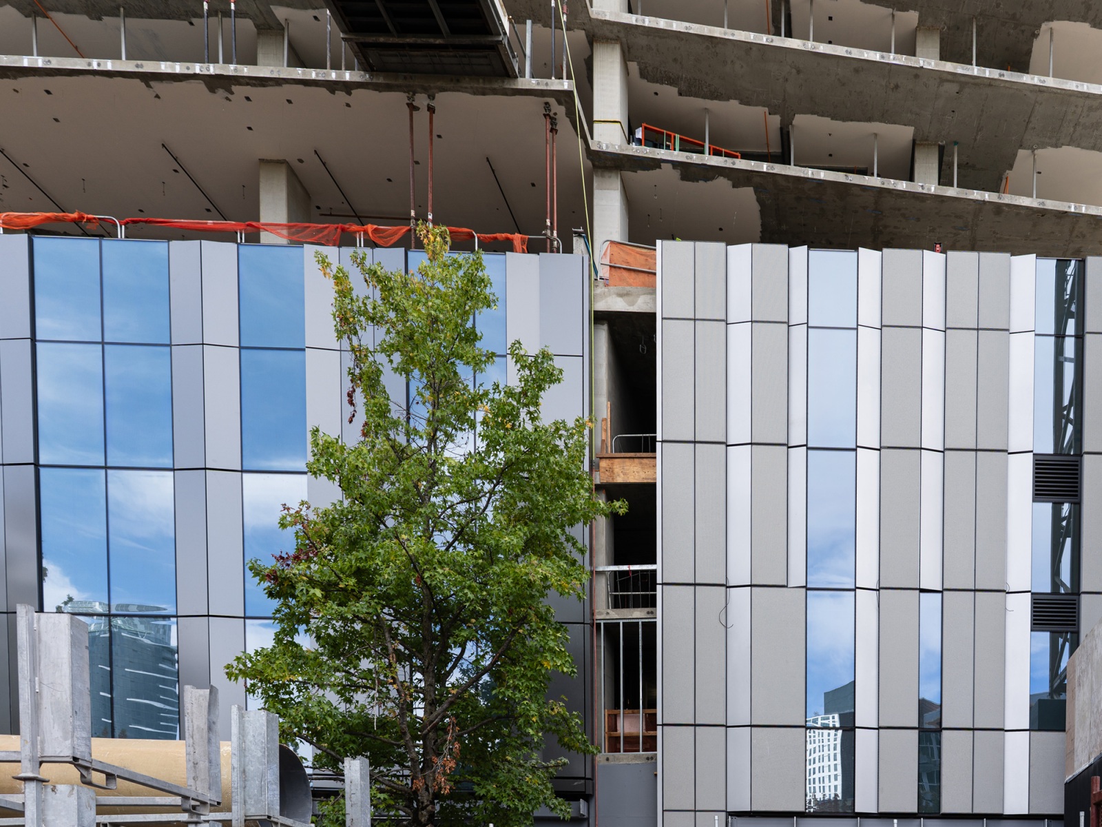 Fast forward to today, and those details are coming to life on site in the Denny Triangle. The Talon Wall system at Sloane is a unique hybrid façade system that combines features of both curtain wall and window wall systems. The decision to move from the original system came relatively late in the design process during CDs, but it proved to be a worthwhile change that enhances both performance and aesthetics.